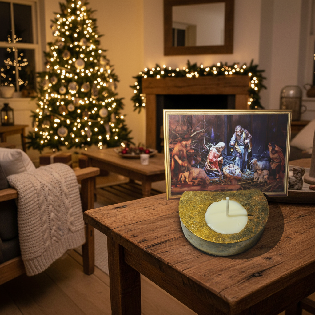 1 porta-Cartão de Natal com vela aromatizada atóxica.
