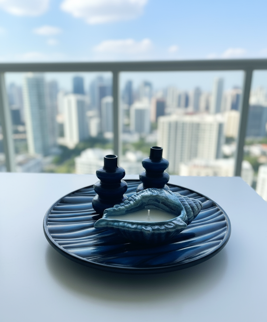 Este conjunto exclusivo, moldado artesanalmente em gesso, foi pensado para adicionar um toque de harmonia e positividade ao seu ambiente, ressaltando o conceito holístico de bem-estar.