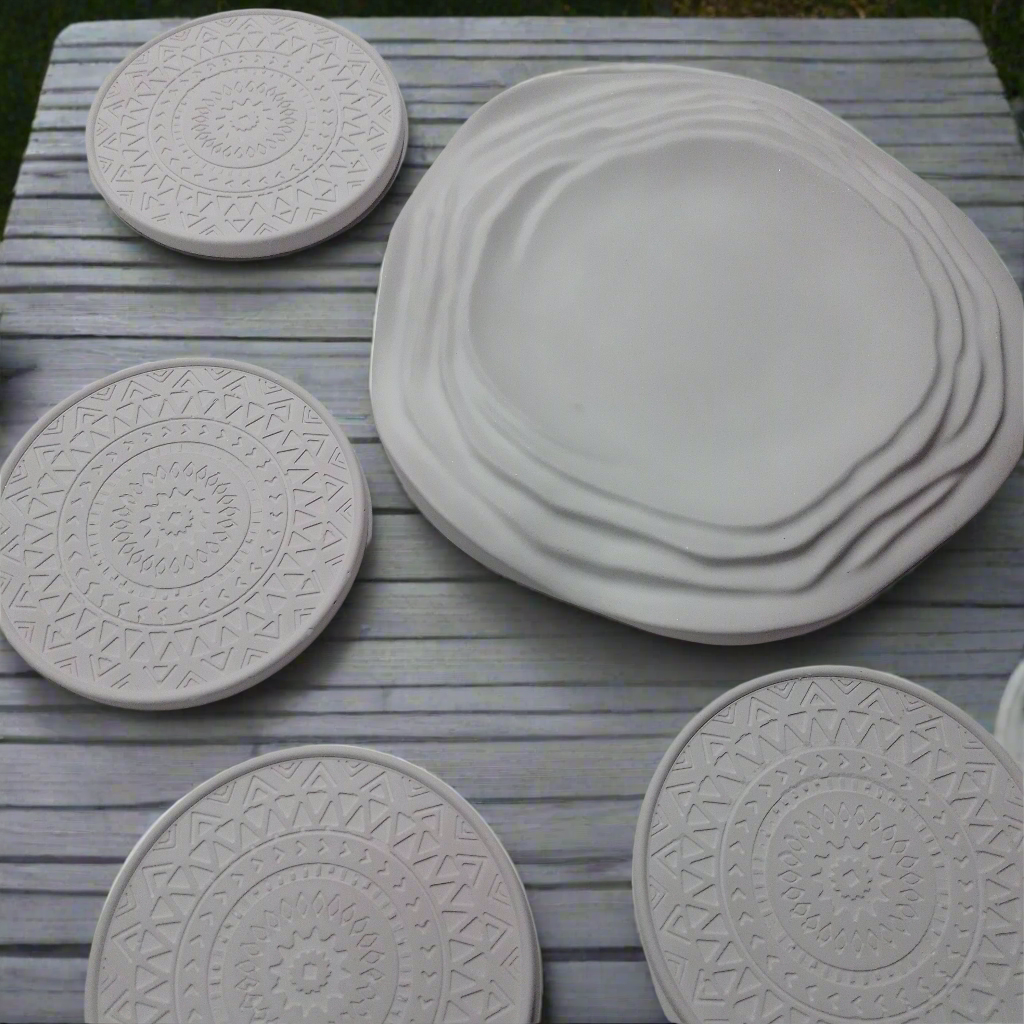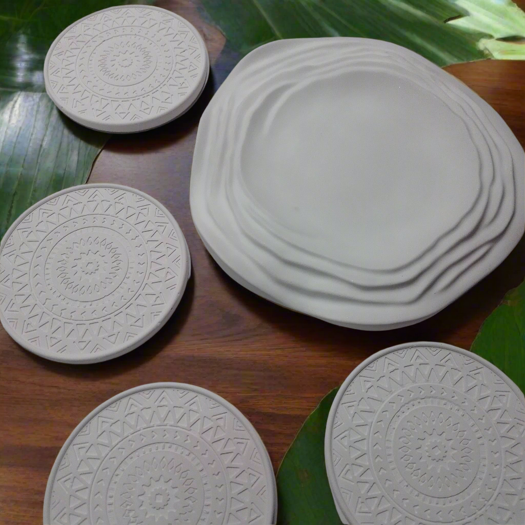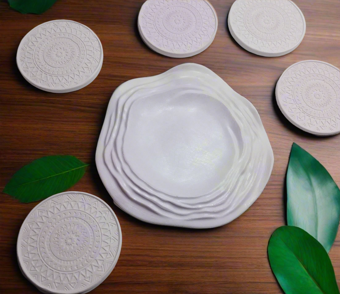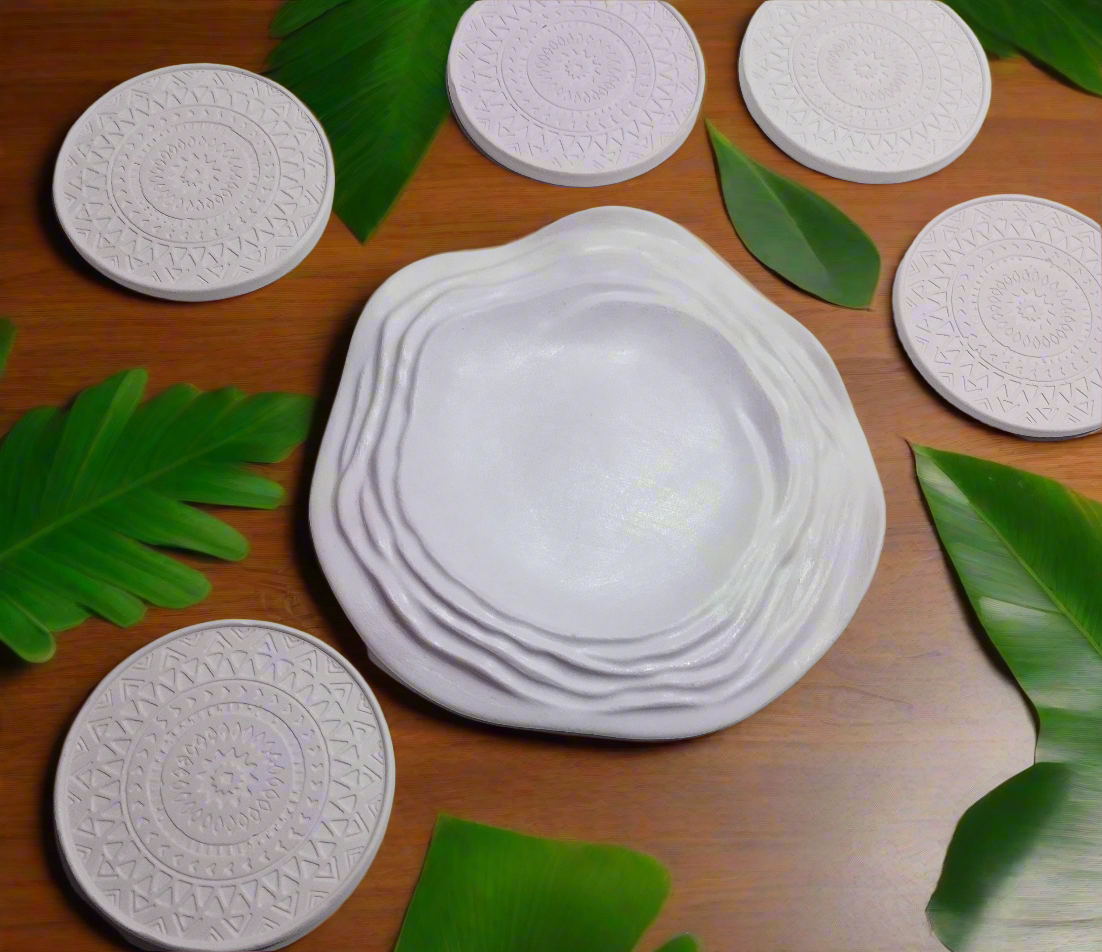 Seis porta-copos +Um prato de sobremesa:cimento artesanal