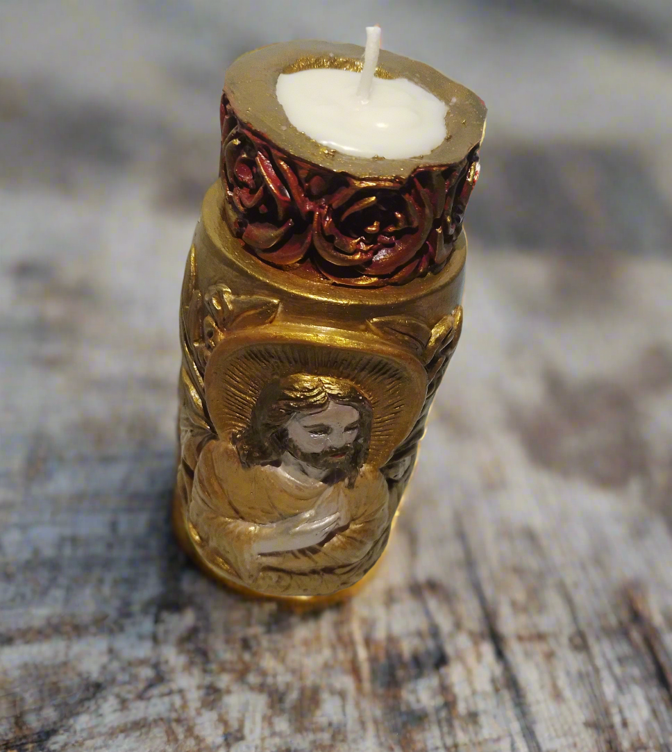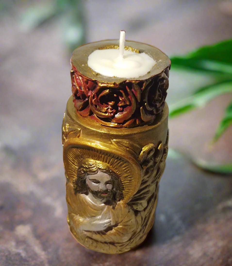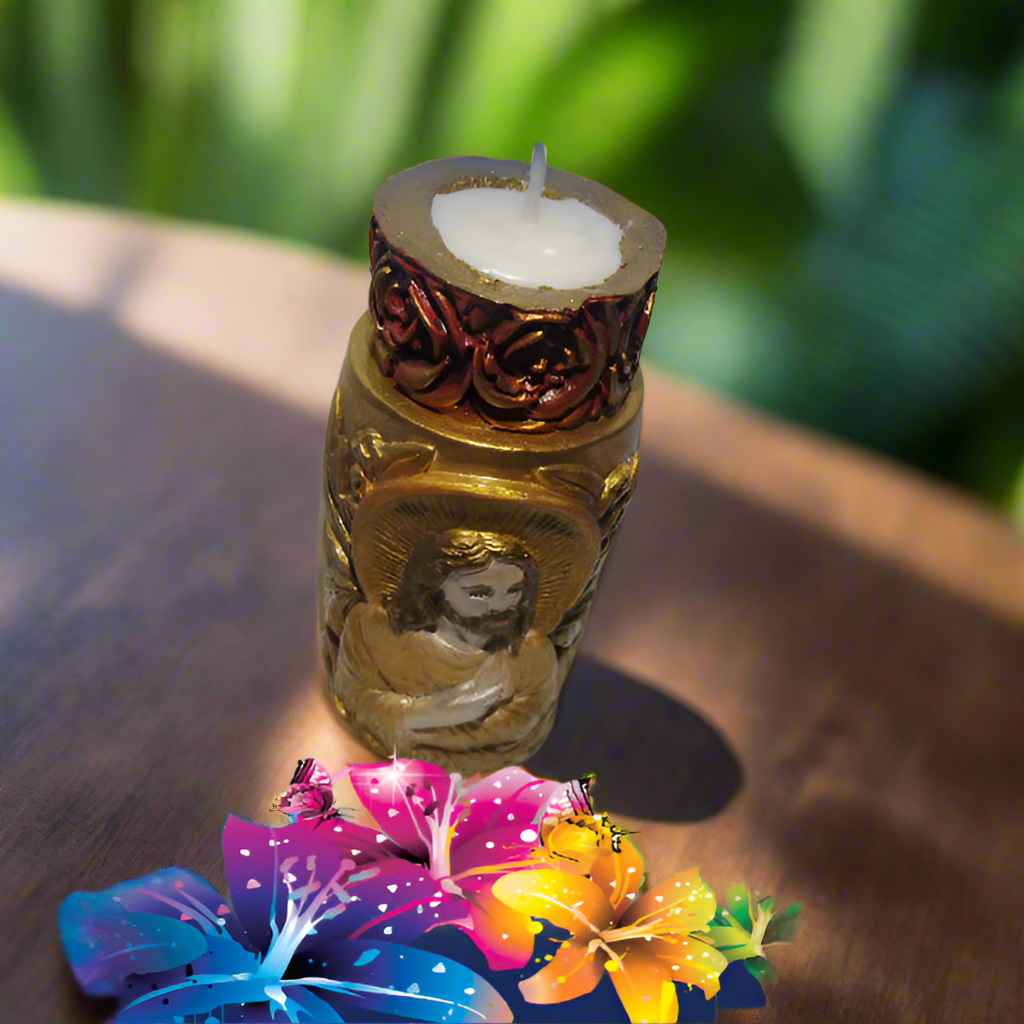 1 Escultura com vela Atóxica acoplada aromatizada com essência de mel, este é um elemento simbólico. Não é necessário acender o pavio.