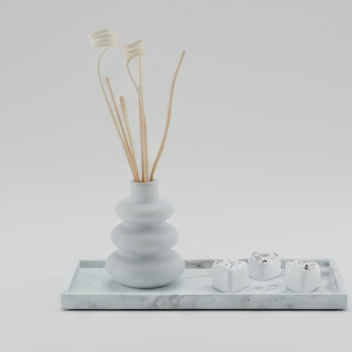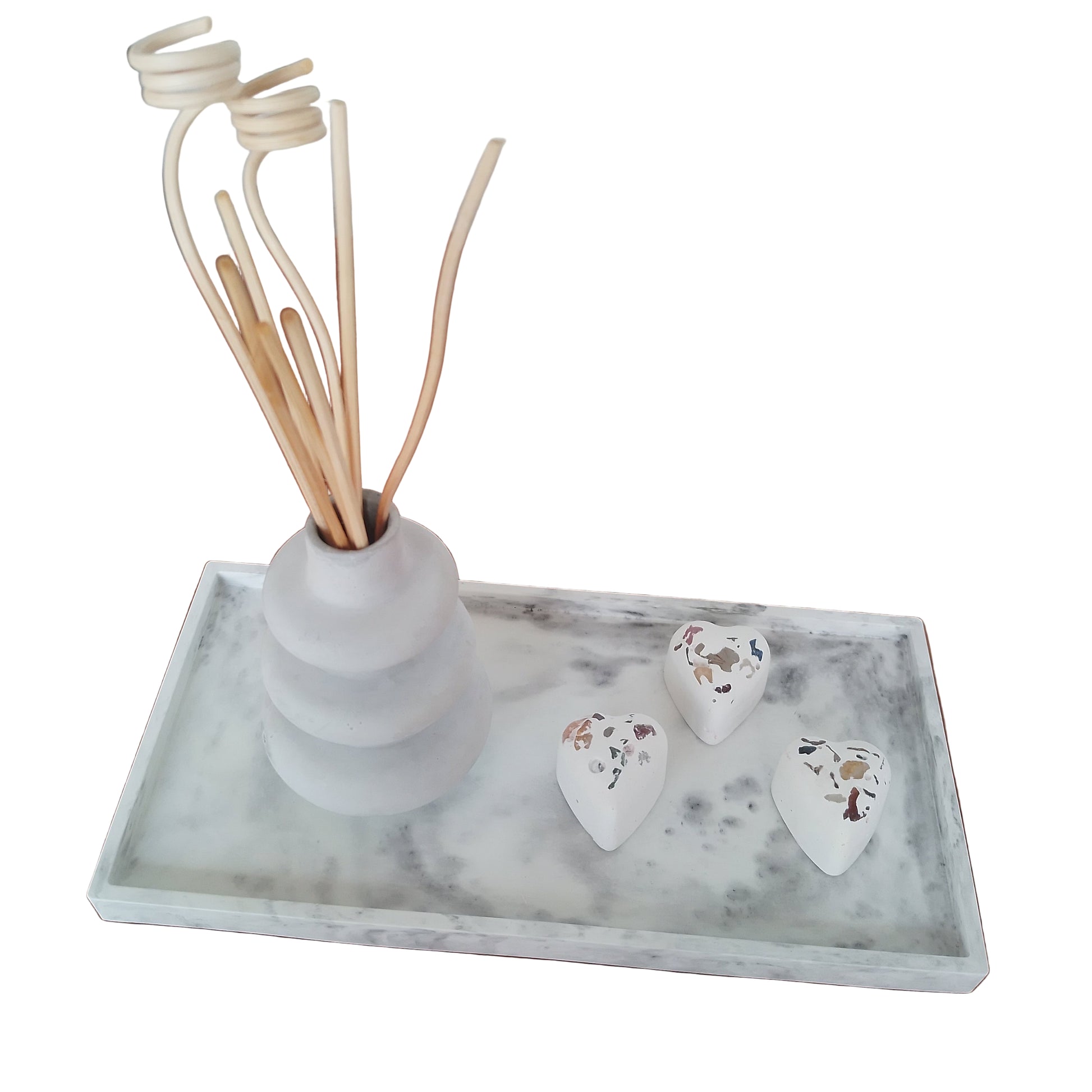 Bandeja marmorizada cinza+ Recipiente+3 corações com cristais