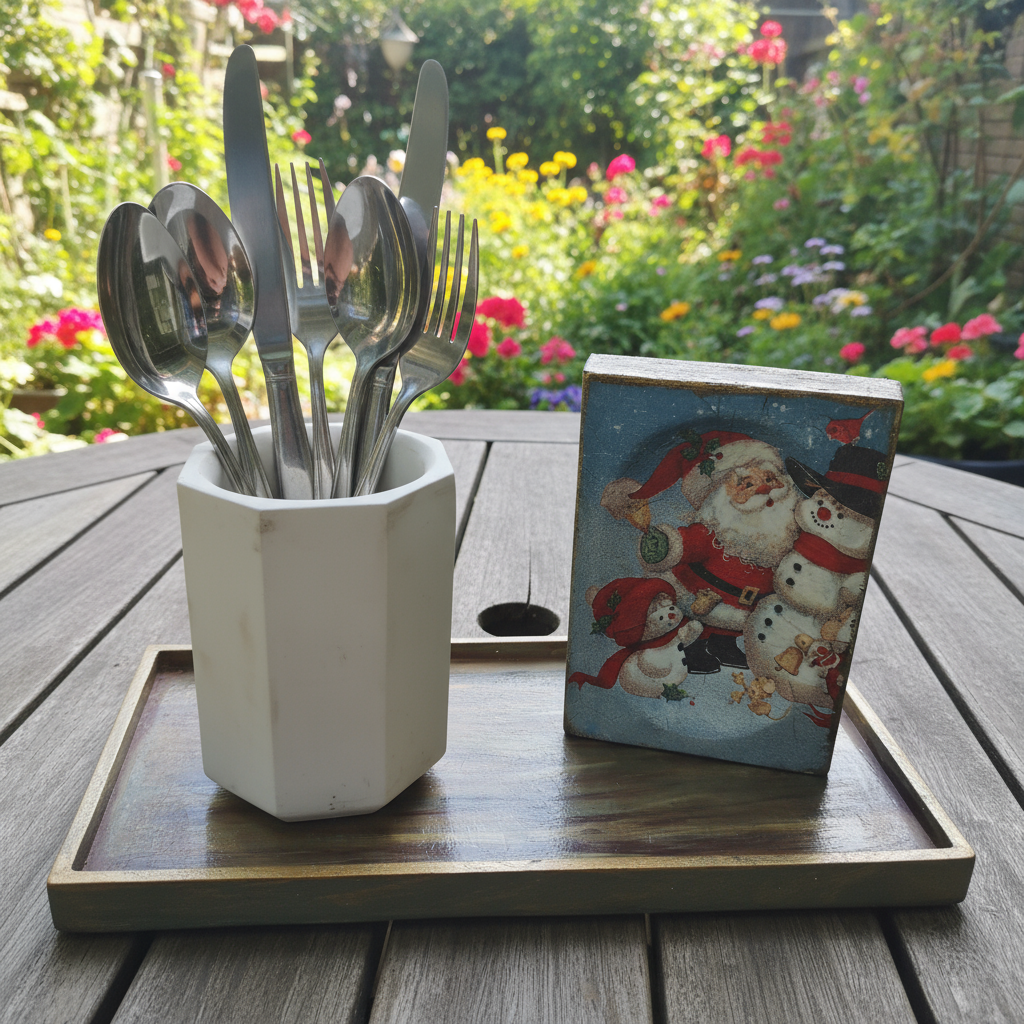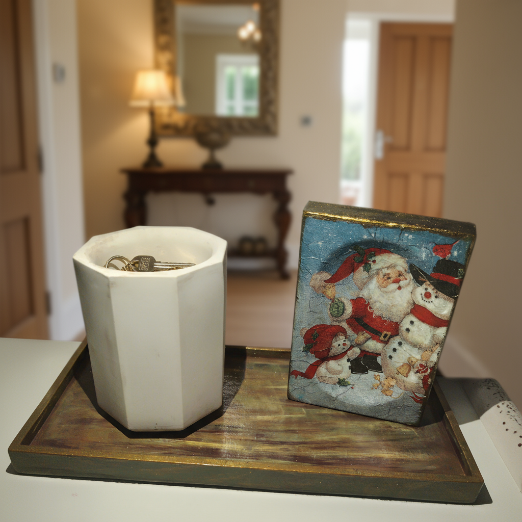 1 Estampa de Papai Noel: cimento artesanal, 12cm X 8cm.