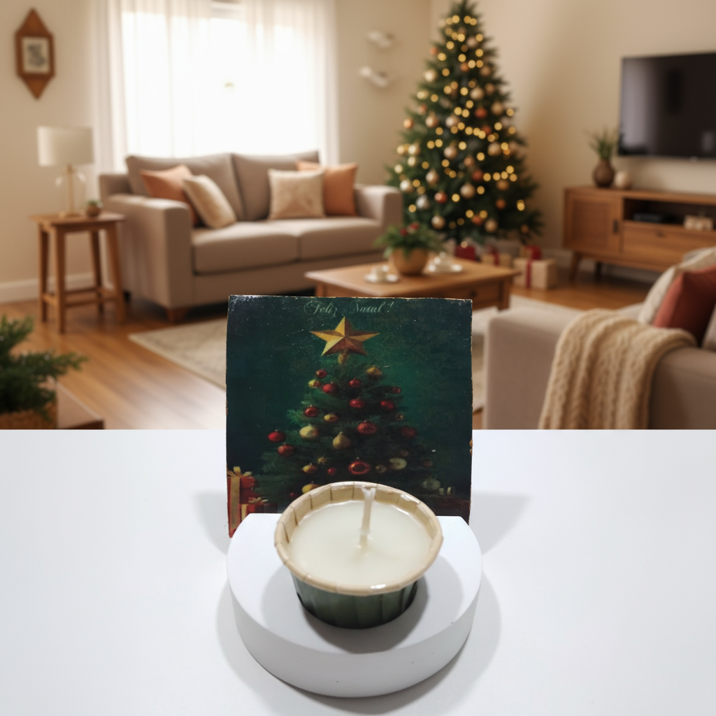 1 porta-Cartão de Natal com vela aromatizada atóxica + 1 cartão.