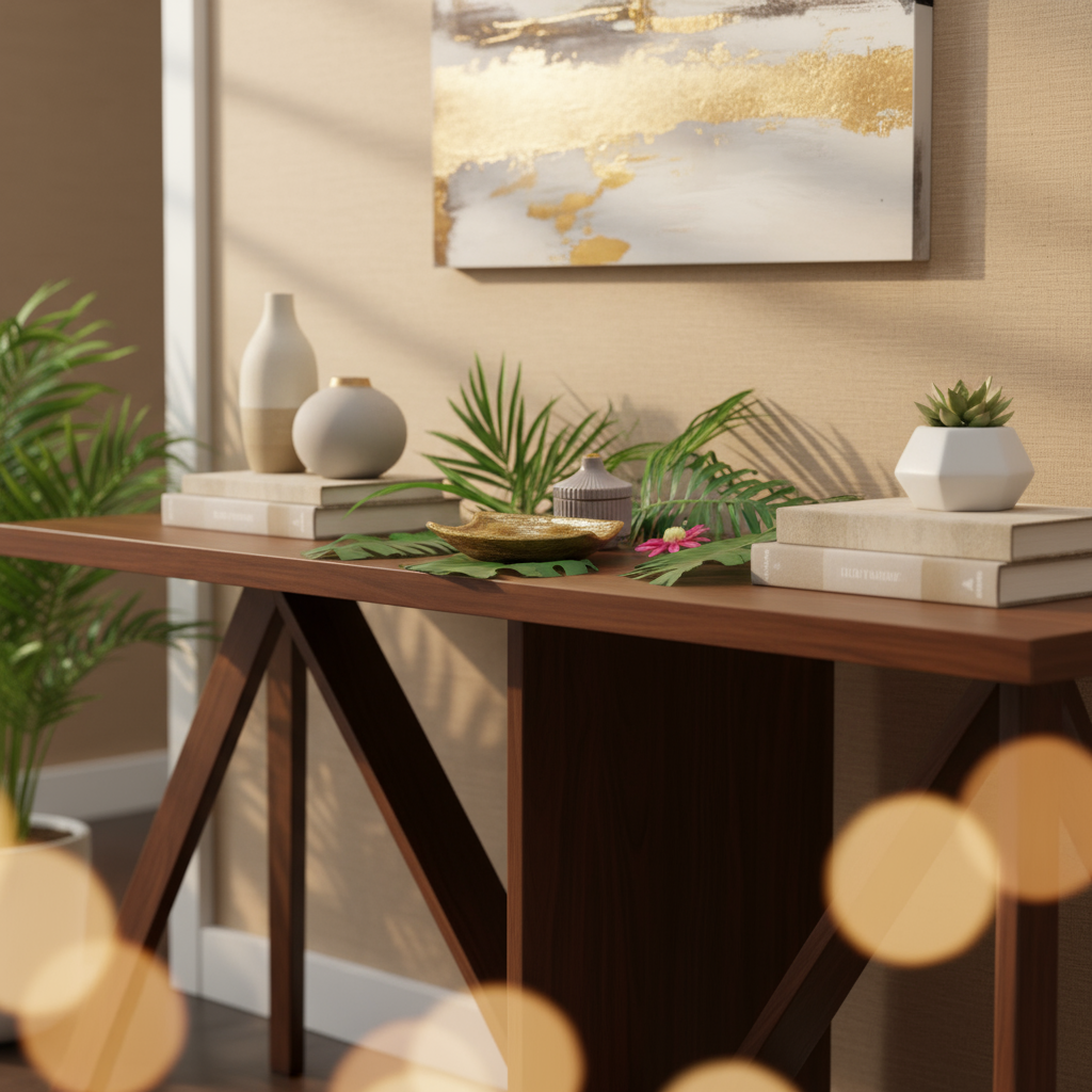 A bandeja reflete os raios de outono e os veios existentes no tronco da madeira cortada. A frieza da coloração do pote nos remete ao inverno. O conjunto desperta a sensação de quente e frio, agregando algo alegre e doce.