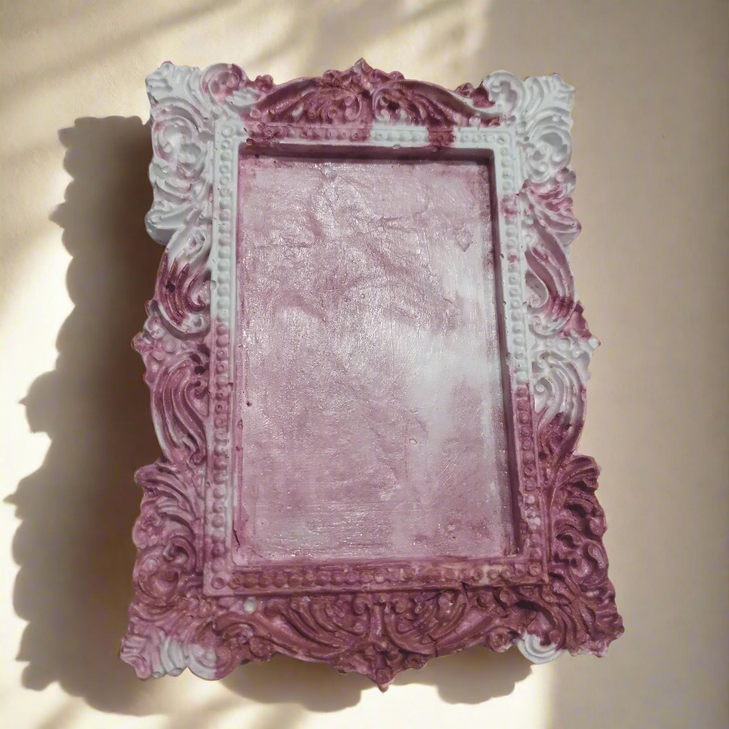 1 porta-retrato que poderá ser utilizado no banheiro com espelho de aumento. Tamanho:12cm X 8cm parte interna: 7cm X 5cm.