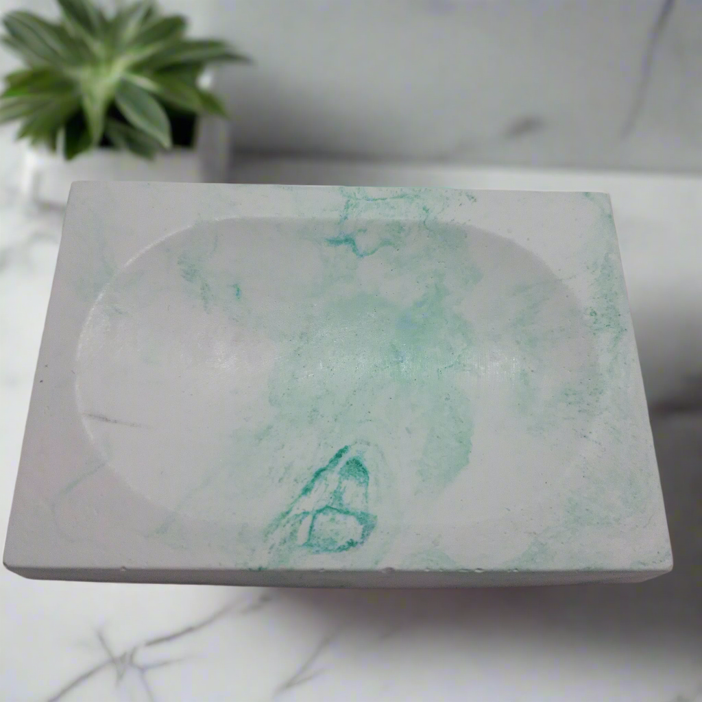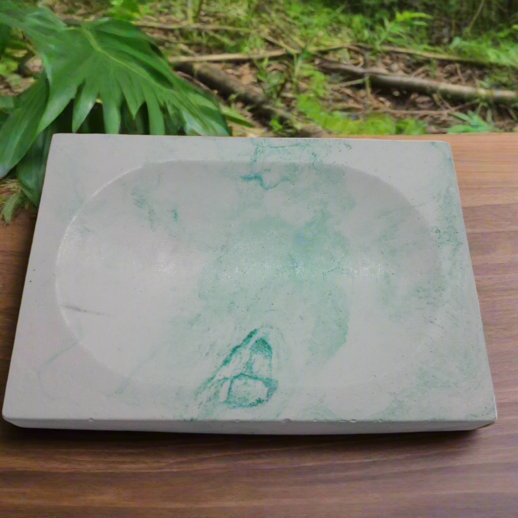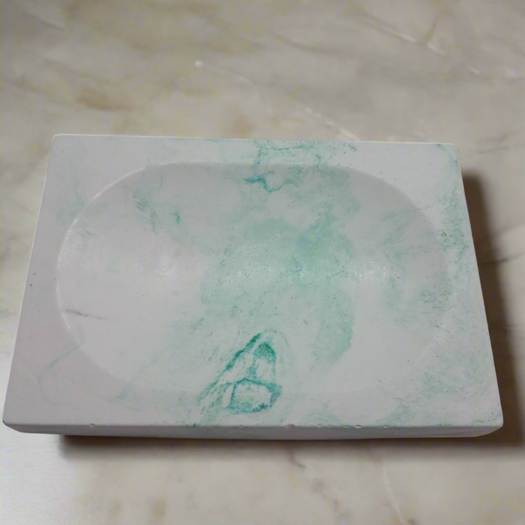 1 saboneteira. Material: cimento, aditivos, pigmentos.